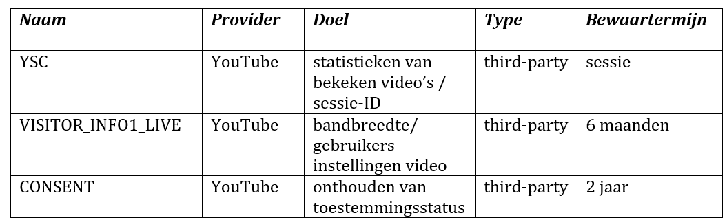 We gebruiken géén analytics. Onderstaand overzicht toont de cookies die wij gebruiken